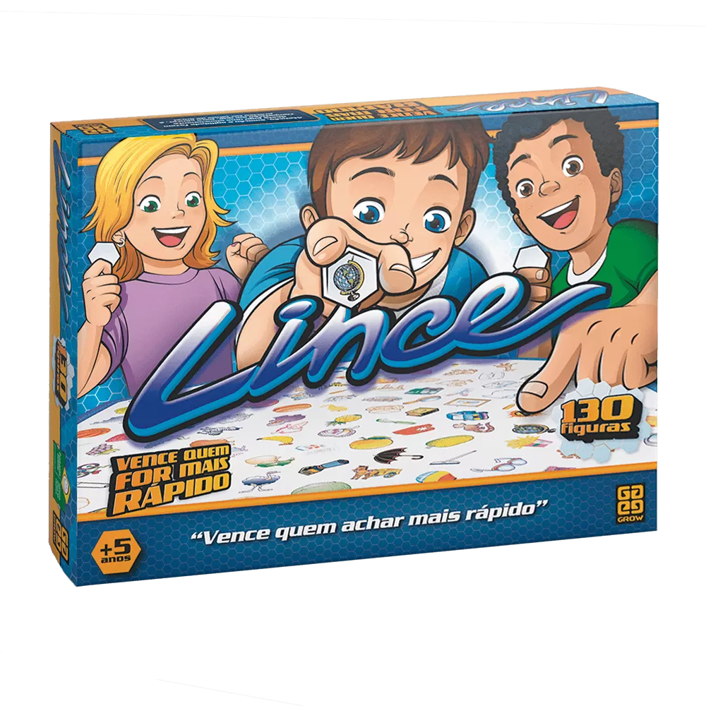 Lince é uma movimentada competição na qual sua rapidez e seu reflexo decidem cada jogada. Os jogadores recebem as cartelas com figuras e letras que estão espalhadas no tabuleiro e depois do sinal, devem tentar localizá-las rapidamente, com suas fichas coloridas. Quem colocar primeiro as fichas será o vencedor.