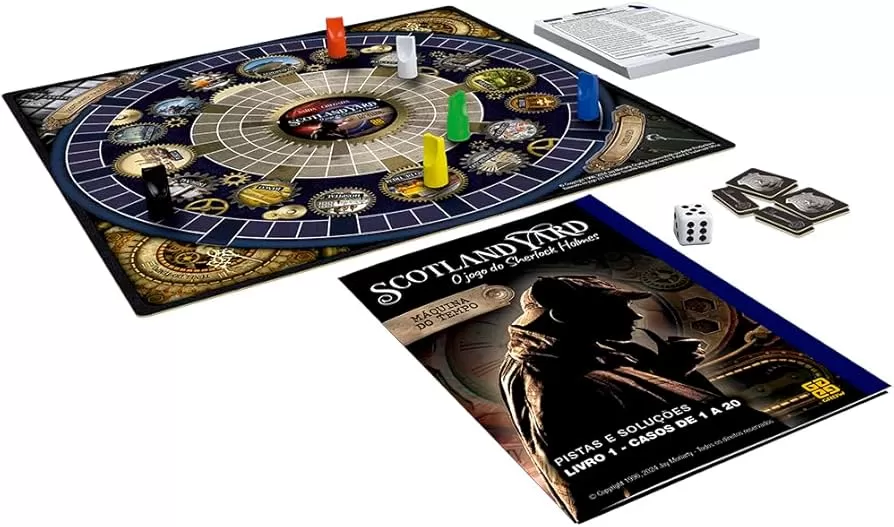 O Scotland Yard Máquina do Tempo é um Jogo de estratégia e raciocínio da Grow. Os jogadores leem juntos, em voz alta, um dos casos. A partir daí, andam pelo tabuleiro usando o dado e visitando os locais: Teatro, Supermercado, Farmácia, etc.