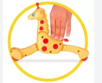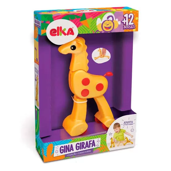 A girafa divertida que adora correr! Você aperta as costas da Gina para baixo que a ela sai em disparada e depois volta a posição normal. A embalagem também faz parte da brincadeira, são dois animais para recortar e fazer um divertido teatrinho de dedo!