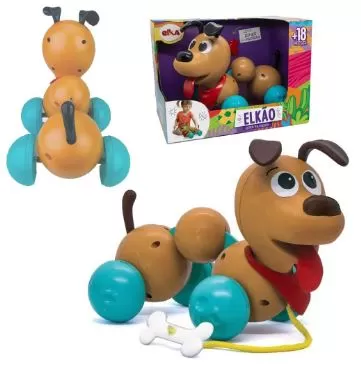 Um Cachorrinho super divertido para ser o novo companheiro dos pequenos! O Elkão vem com um cordão para as crianças passearem com ele por onde quiser!