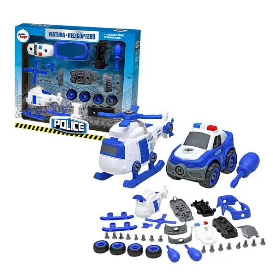 Esse kit de montar é uma aventura em dose dupla com diversão sem limites. A Viatura de Patrulha possui design aerodinâmico e rodas prontas para qualquer terreno, enquanto o Helicóptero de Observação garante o suporte aéreo necessário para monitorar a cidade. Ambos são construídos com materiais resistentes e cores vibrantes, estimulando a criatividade, a coordenação motora e o jogo simbólico das crianças.