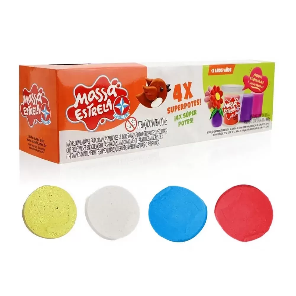 Desperte a criatividade dos pequenos com o Kit 4 Potes de Massa Estrela! Este conjunto é o ponto de partida perfeito para horas de diversão, permitindo que as crianças modelem, criem e explorem formas e cores com a qualidade clássica da Estrela. As massinhas possuem textura macia e cores vibrantes, ideais para desenvolver a coordenação motora fina e a percepção tátil de maneira lúdica e segura.